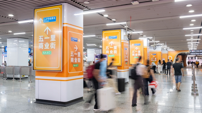 2024年国庆假期,焕能升级后的地铁五一广场站面貌一新。吊挂式LED指示屏、大型吊顶导向灯箱,组合式引导导视标识系统,以颜色及图形打造的环形特色通道,数百万客流有序盘带吞吐。困扰这座最大地铁站大客流引导的难题迎刃而解。