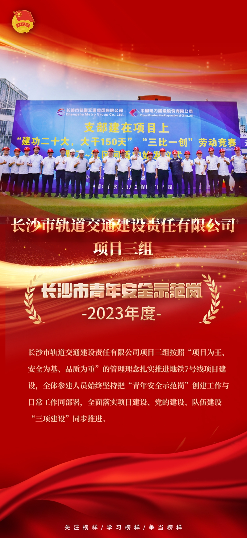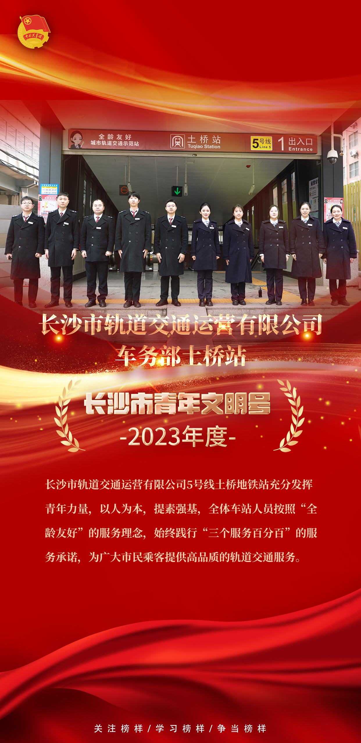 近日,共青团长沙市委发布《关于命名表彰2023年度长沙市青年文明号的决定》《关于长沙市青年突击队建功行动评选结果的通报》《关于命名表彰2023年度长沙市青年岗位能手的决定》,共青团长沙市委、长沙市应急管理局发布《关于2023年度长沙市青年安全生产示范岗活动结果的通报》,长沙市轨道交通运营有限公司车务部土桥站荣获“长沙市青年文明号”称号,长沙轨道客运保障青年突击队荣获“长沙市青年突击队建功行动优秀青年突击队”称号,长沙市轨道交通建设有限责任公司项目三组荣获“长沙市青年安全生产示范岗”,应急安全部谭伟,运营公司汤颖宏、陈孟龙荣获“长沙市青年岗位能手”称号。