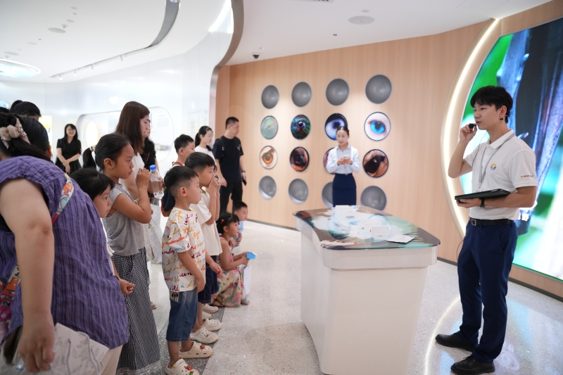 8月29日,第二场“光明未来·爱眼同行”亲子活动在长沙爱尔眼科医院眼健康科普馆顺利开展。活动现场,科普馆辅导员化身“护眼小天使”,带领孩子们开启奇妙的护眼之旅。孩子们戴上“眼球探险家”VR设备,观看“近视防控大作战”动画短片,沉浸式学习了眼球内部结构,巩固了“少看电子屏”“正确坐姿”等护眼知识。在“我是小小验光师”环节,孩子们穿上专业验光装备,有模有样地为小伙伴模拟视力检测操作,亲身体验眼科工作的奥秘;活动在“护眼知识闯关”游戏中收官,孩子们开动小脑筋,现场气氛热烈,在欢乐中强化了护眼知识记忆。