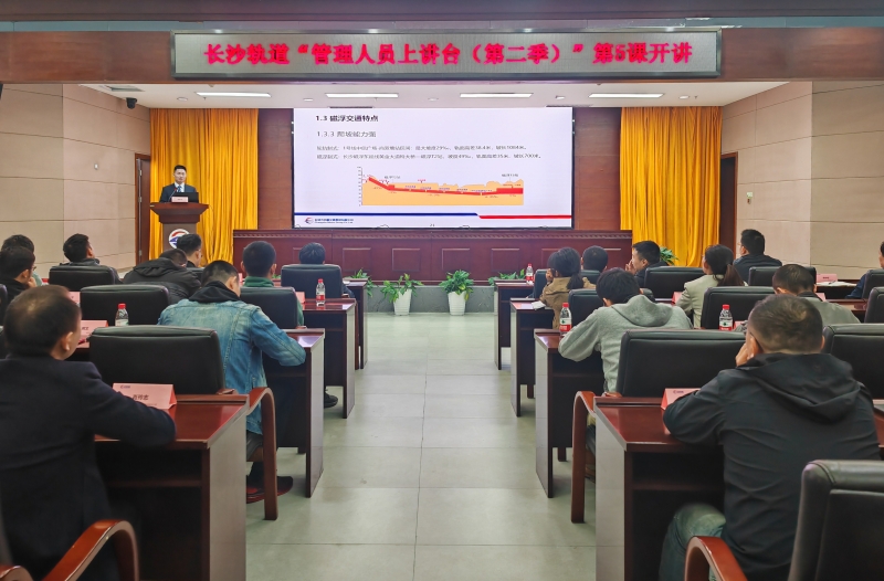 4月27日上午,磁浮线建设公司技术部经理胡新宇对长沙磁浮快线区间开岔工程建设管理实践经验作了分享,来自各部门、中心、子(分)公司共计70余人参加培训。