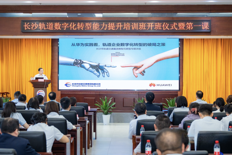 开班仪式结束后,由华为交通智慧化军团首席数字化转型专家李克武以《从华为实践看轨道企业数字化转型的破局之策》为题授课。他提出“战略驱动—技术使能—组织变革”转型模型,分享华为数字化转型建设、AI预测性维护等经验,并结合长沙轨道特点,提出了针对性的转型建议。学员纷纷表示,将以此次培训为契机,把“数字化转型不是选择题,而是必答题”的理念融入日常工作,主动成为数字化转型“践行者”与“传播者”。