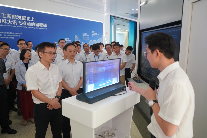 在科大讯飞工作人员的引导下,大家参观了人工智能展厅,详细了解了该公司在人工智能领域的技术研发成果与发展历程。参观过程中,与轨道交通行业紧密相关的智能应用场景引发学员们的强烈关注,科大讯飞人工智能在安防监控、能耗管理、运营服务等方面的应用成果,为轨道交通运营管理提供了全方位的数字化升级思路。随后,科大讯飞星火军团湖南区域相关负责人为学员们带来了《认知大模型时代的企业数字化生产力》的主题分享,进一步拓宽了大家对各自专业岗位数字化转型的想象空间,不少学员结合自身工作,参与了大模型在轨道交通建设管理、运营决策、应急处理等场景中的探讨。