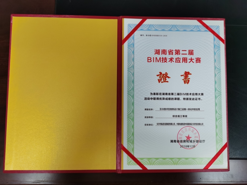 • 湖南省第二届BIM技术应用大赛证书(综合组三等奖)