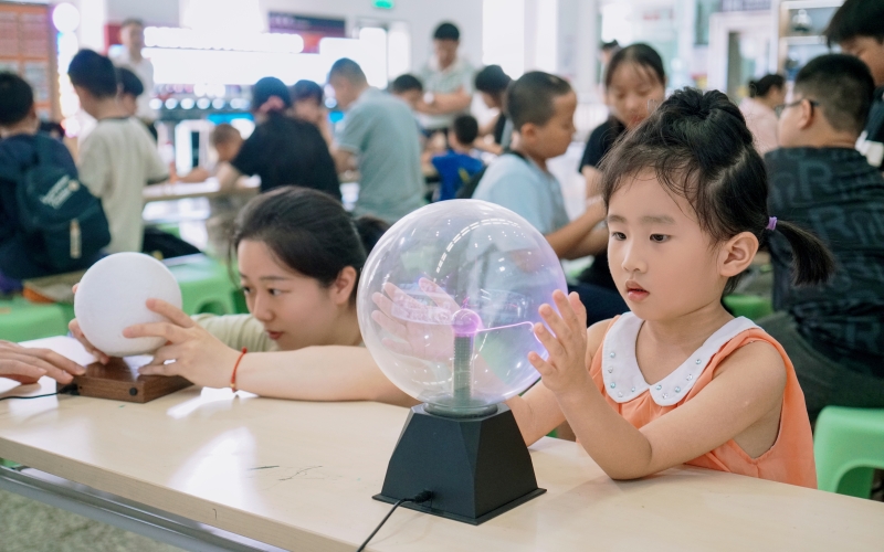 在磁浮科技展厅,全球20余国地铁票卡陈列柜与全国城市轨道交通模型展示柜瞬间点燃孩子们的好奇心。“这是我们长沙的磁浮快线!”当红白相间的磁浮模型映入眼帘时,一个孩子兴奋地指认。磁浮科普知识视频播放区,动画短片正以生动的画面解析核心技术,原本抽象的“电磁悬浮”“直线电机驱动”等概念,通过列车悬浮、加速的动态演示变得一目了然。