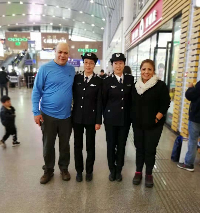 “May I help you ?”一句亲切又温柔的话语搭建起了沟通的桥梁。2月9日上午,执法办公室2号线执勤中队队员朱哲、邵伊媚如往常一样例行巡站,在巡至长沙火车站地铁站厅层时遇见两名神情焦急、四处张望的外国友人。两名女队员主动上前敬礼,出示了执法证件,并尝试用英文询问了对方情况。夫妻二人表示不太会中文,旅行全程基本靠手机软件翻译,随即他们拿出了长沙高铁南站的车票,因错误理解在途径长沙火车站才导致了误降,且表示想迫切赶往高铁站搭车。执法队员得知情况后,耐心的解释了一番,两人非常默契的相视一笑,热心陪同外国乘客至高铁南站候车层。真诚是开启彼此双方心灵的钥匙。一路上,两名执法队员用流利的英文向夫妻介绍了长沙星城的风土人情和长沙地铁现有线路情况,热情表达了欢迎他们能再次来长沙游玩做客的想法。两名外国朋友大呼幸运,感谢这次美好的“邂逅”,点赞了队员的热情服务,希望下次能有机会久留长沙,领略长沙别样美景。在抵达高铁站后,执法队员与铁路工作人员做好了具体情况的交接工作,送别了夫妻二人。