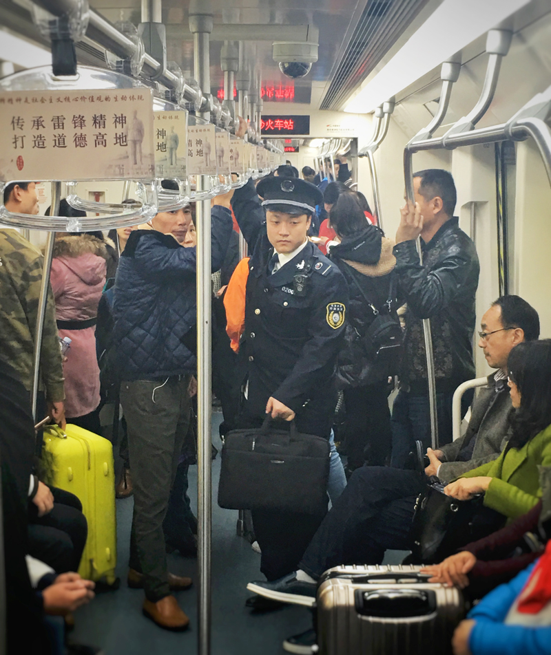 春节期间,执法人员集中巡查站点管辖范围内的各种不文明行为和保护区范围内的安全督查巡视工作,做到全线覆盖。执法人员一个个着装整齐,规范使用执法语言,严格落实“两人一组”的执勤标准,穿梭在地铁各站点巡查管控。规范出入口秩序,整治“脏、乱、堵”现象的发生:疏通进出通道口,与共享单车负责人联系,共同恢复单车摆放,保持站口台阶外整洁有序,提前防范安全隐患;车站内,针对派发传单、流动销售等现象,摸清高发时段,与地铁公安形成联动机制,进行集中整治,提高秩序管控效果;列车上,加强巡查频次,不间断上线跟车,有效防止乞讨、卖艺、扫二维码推广等违规行为发生,提供舒适出行环境。保平安、护畅通、严管理,他们用亲切的话语、暖心的笑容、主动的帮扶为乘客送去冬日的温暖,用一道“敬业福”为乘客度过欢乐、祥和、安宁的春节做出点滴的贡献。