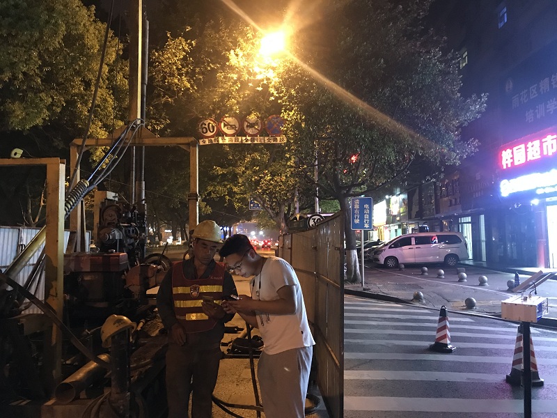 4月20日晚10点,执法办公室刘溪休息在家,途径劳动西路时发现有一台钻探机正在进行地质勘探作业。经现场查验,刘溪判断该施工范围疑似在地铁隧道结构正上方,遂立即上前叫停施工,并请求中队支援。