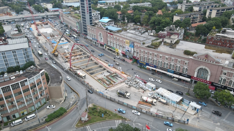 井湾子站~林科大站区间主要穿行于卵石层及全、强风化泥质粉砂岩,左线线路全长767.18米,区间隧道埋深约14.4~18.1米,“韶山10号”盾构机出井湾子站后沿韶山路向北前行,穿越木莲路高架桥、D-172、D-059两处地下通道、侧穿湖南省供销社宿舍后进入林科大站。