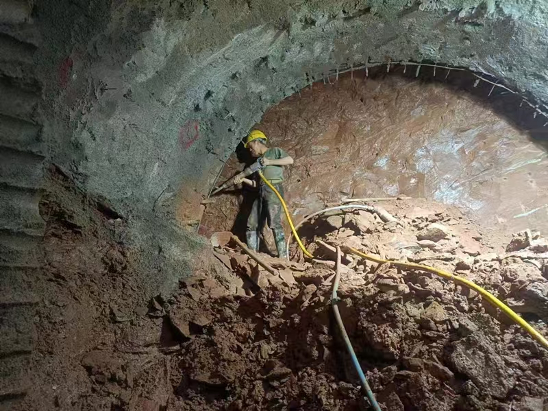 地铁6号线东延线已于今年5月全线贯通,目前正在进行区间左右线联络通道施工及中间风井内部结构施工。如蒸笼般的联络通道暗挖施工现场,挖掘机、打钻机、破碎锤、混凝土罐车等机器发出轰鸣,李师傅和工友们有条不紊地穿梭在各项设备之间。洞内空气闷热潮湿,热气蒸腾氤氲,汗水从他的额头滴落,打湿了他的衣衫,手中的电钻声“呲呲”作响,夹杂着师傅们的加油呐喊,轨道建设人的奋斗之歌就这样在地下17米高亢回荡。