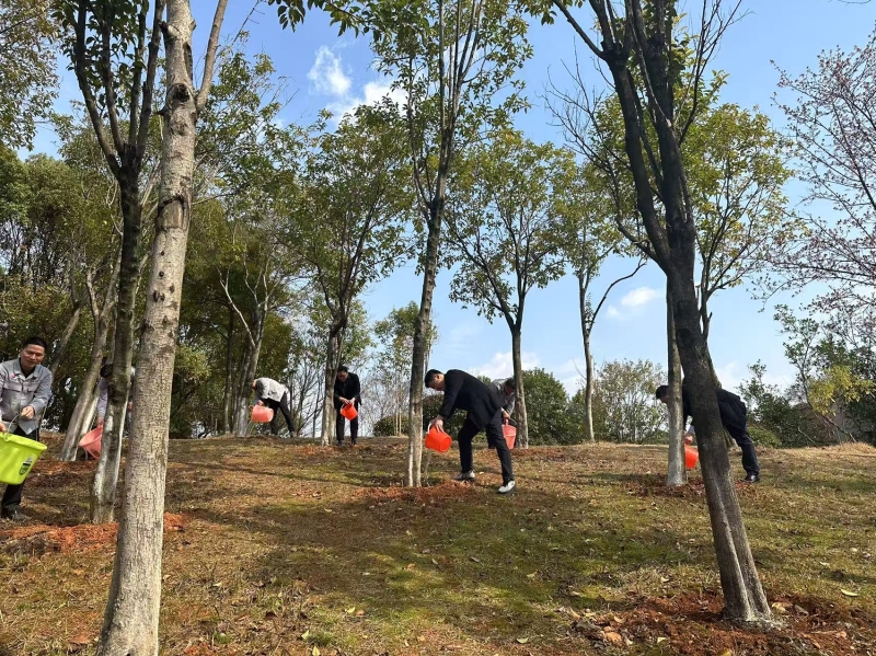 各党支部纷纷与施工单位、社区、园区联动,发动广大党员群众开展植树护林志愿活动。志愿者们分工协作,挥锹挖坑、扶苗培土、浇水定根、修枝除草,在6号线东延段项目风井施工地面栽种树苗,在7号线一期工程旁的鄱阳小区共添新绿,在湘府文化公园开展春季林木抚育管护……经过大家的共同努力,一棵棵树苗扎根挺立,一株株灌木安家落户,一片片林木梳妆换颜,为春天献上新的生机和活力。