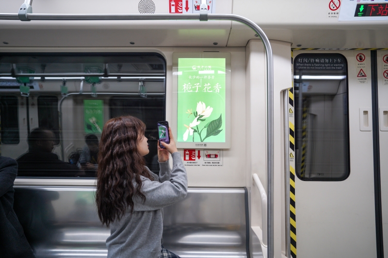 地铁专列散发的栀香来自拉手盒中的天然萃取栀子花香片。长沙地铁根据乘客体验,结合车厢屏幕展示与语音冠名播报等,从嗅觉、听觉、视觉全方位进行推介,让宁乡栀子从田间地头走向网红城市最前沿,传递出长沙奋力推动乡村振兴的浓厚氛围。