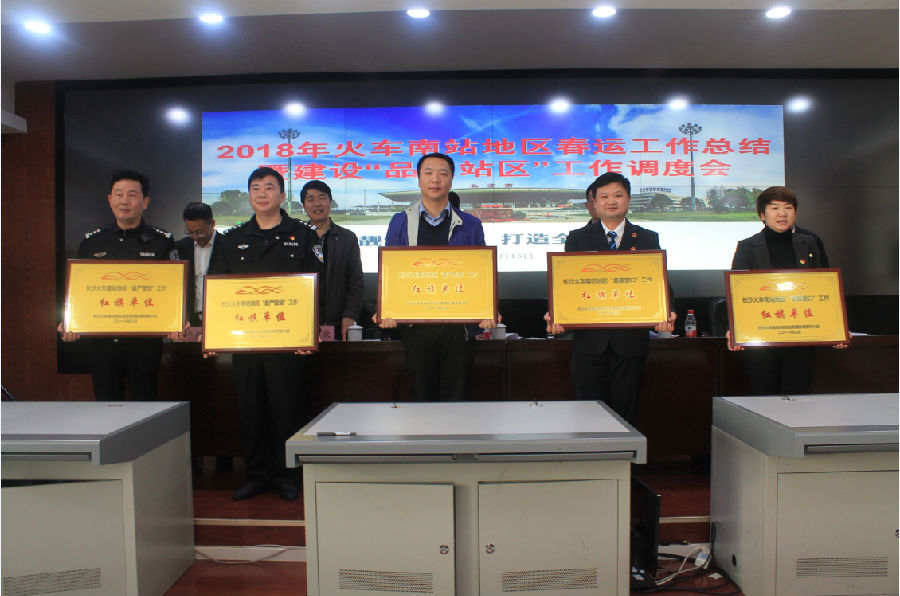 会上,雨花区委副书记陈永高在讲话中表示, 2018年春运从2月1日开始,到3月12日结束,历时40天,火车南站站区各部门单位共同协作配合,经历了低温冰冻恶劣天气的挑战,客流再创历史新高,站区各物业单位有力组织、持续发力、成效显著,整体维护效果良好,旅客出行顺畅满意,确保了站区环境优美,窗口形象更靓更美。2018年是全面贯彻党的十九大精神的开局之年,火车南站地区各相关单位要对标先进典型,继续发扬勇于担当、真抓实干、攻坚克难的工作作风,团结协作、锐意进取,聚焦“品质站区”建设,为“扮靓湖南窗口,打造全国标杆”,全面建设“平安、品质、美丽、和谐”品质站区作出新的更大贡献。