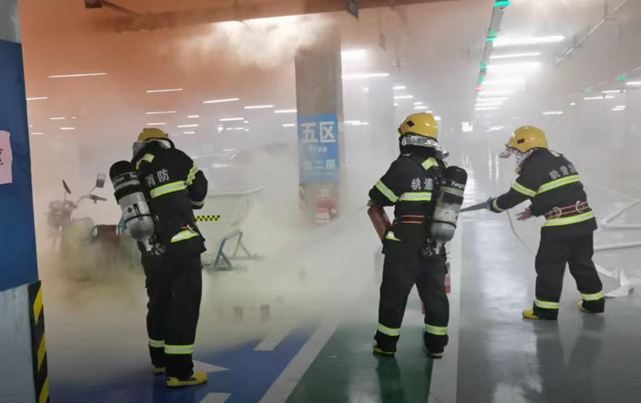 6月29日下午3点,一场灭火疏散应急综合演练在长沙火车南站西广场地下停车场如火如荼的开展。